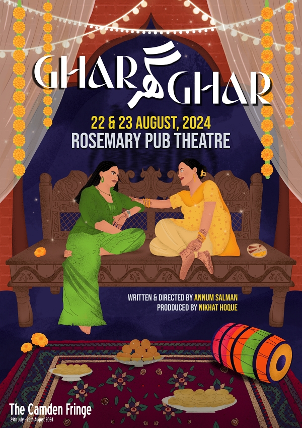 New writing debut “Ghar Ghar” by Annum Salman is a deeply moving and culturally rich theatrical experience that promises to captivate audiences with its exploration of themes of family, societal pressures, and personal resilience. This compelling production is set to take the stage at the Rosemary Branch Pub Theatre from August 22nd to August 23rd, as part of the Camden Fringe festival. Buy tickets