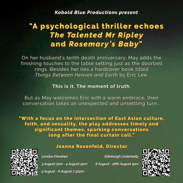 Joanna Rosenfeld, Director, remarks, The play explores the complex themes of grief, betrayal, and identity with a unique and thought-provoking storyline that will captivate audiences. With a focus on the intersection of East Asian culture, faith, and sexuality, the play addresses timely and significant themes, sparking conversations and reflections long after the final curtain call.